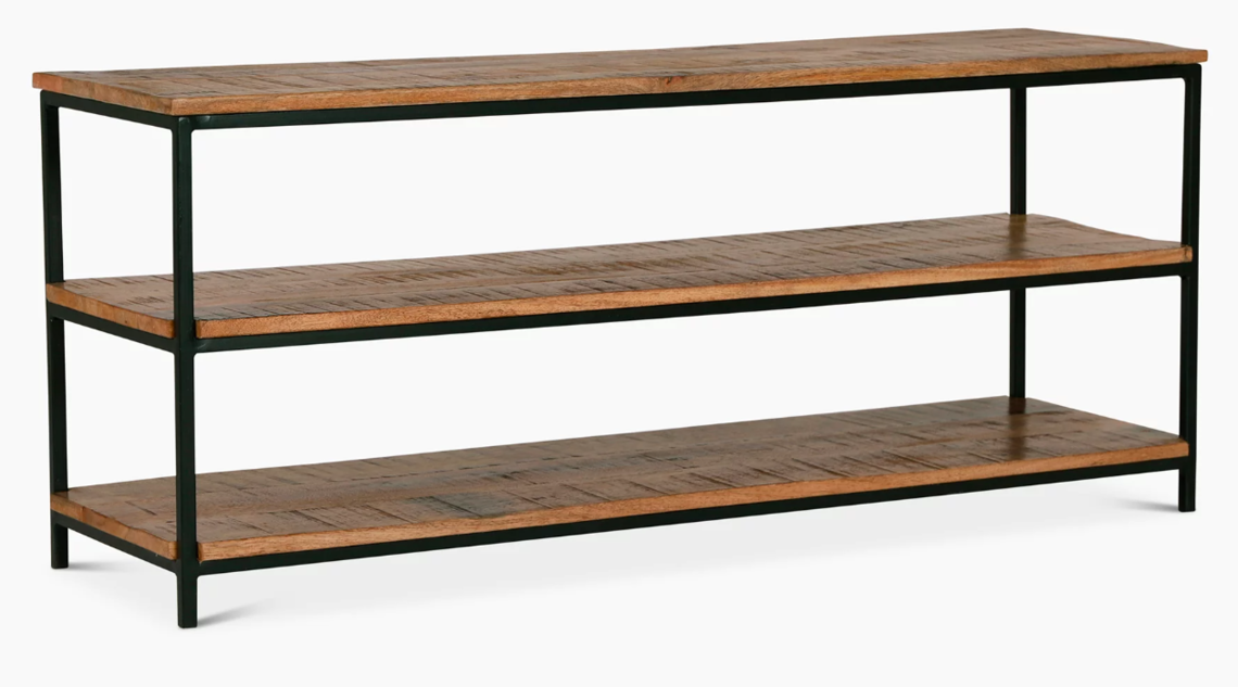 Kotimainen Hiipakan leveä tv-taso jossa paljon säilytystilaa.